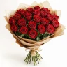 Наши красные розы отобраны с любовью и заботой, чтобы гарантировать их свежесть и безупречный вид. Они аккуратно собраны в стильной крафтовой упаковке, которая придаёт букету естественный и современный вид. Завершает композицию роскошная атласная лента, добавляющая нотку утонченности и элегантности.